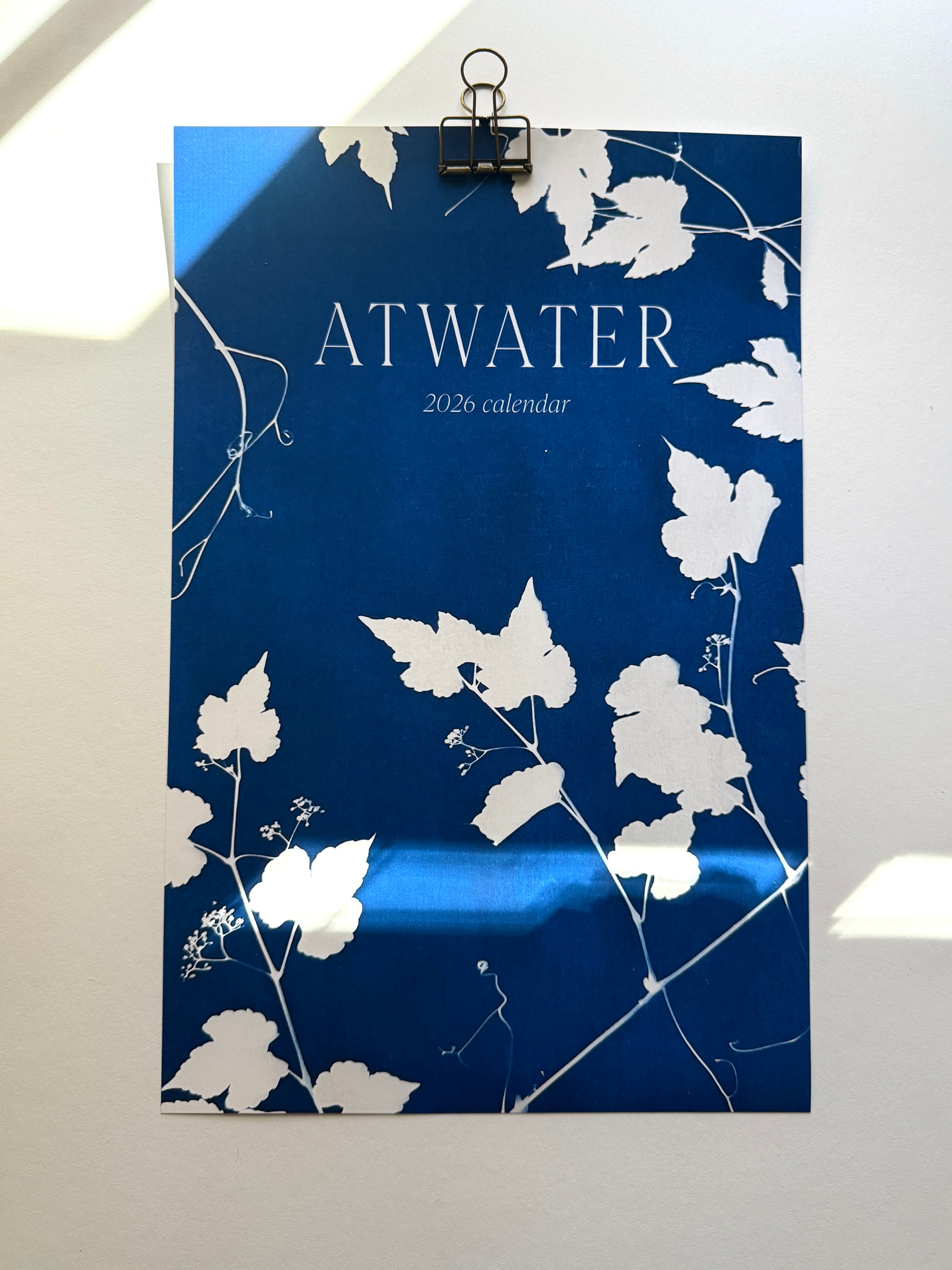 The 2026 wall calendar measures 9”x14” and is held together by one large binder clip that you can hang from a nail on your wall or tack in a cork board.