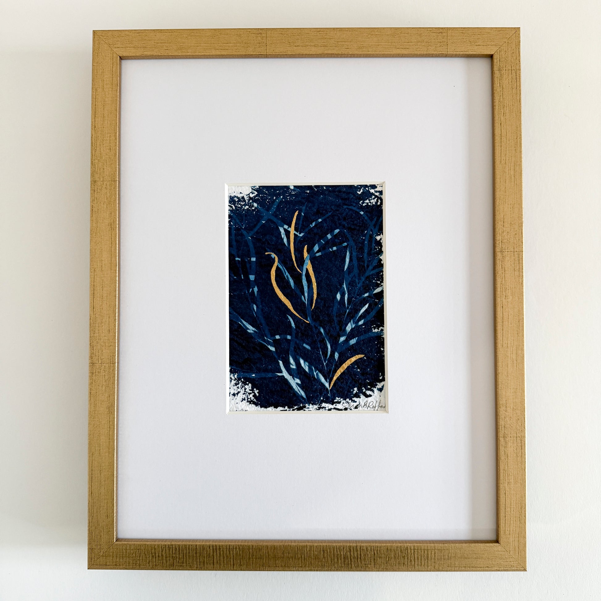 5" x 7" framed in 12" x 15" gold frame with glass, ready to hang