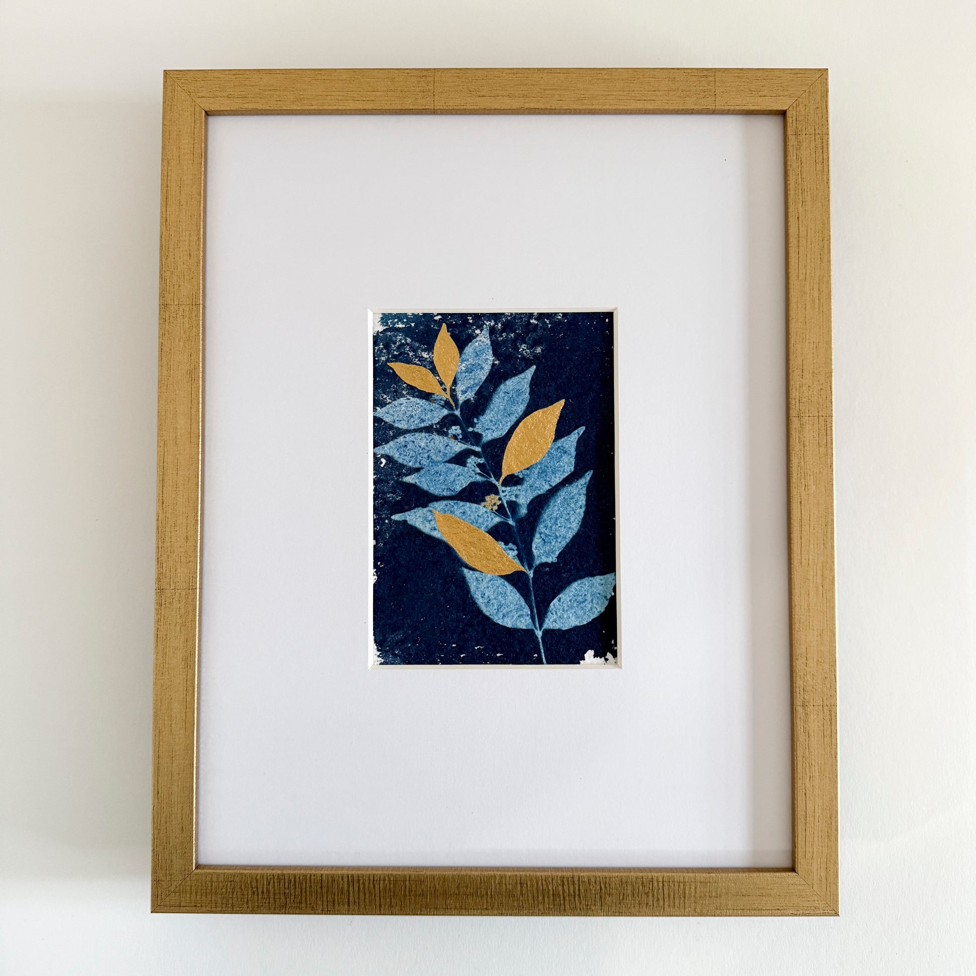 5" x 7" framed in 12" x 15" gold frame with glass, ready to hang