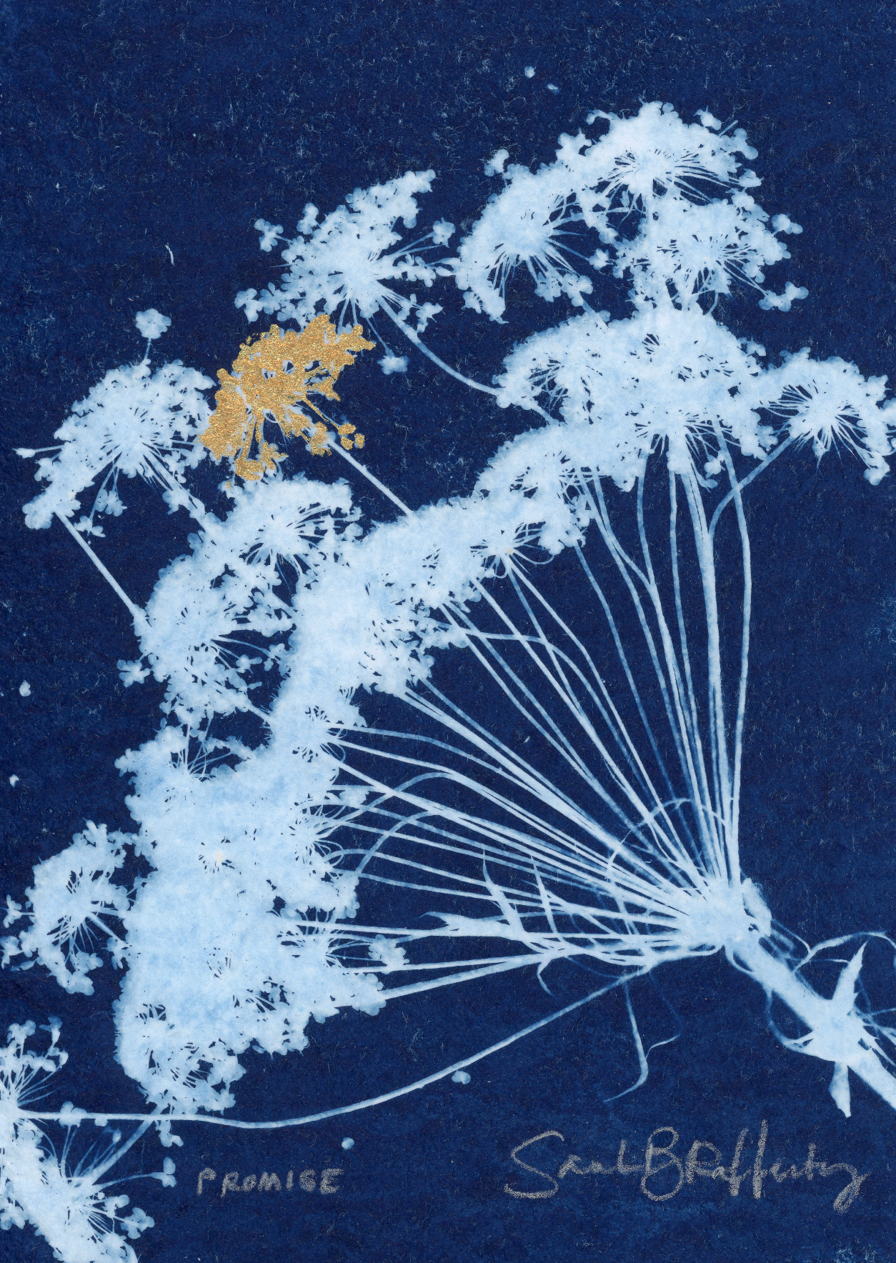 Original Cyanotype with gold acrylic
