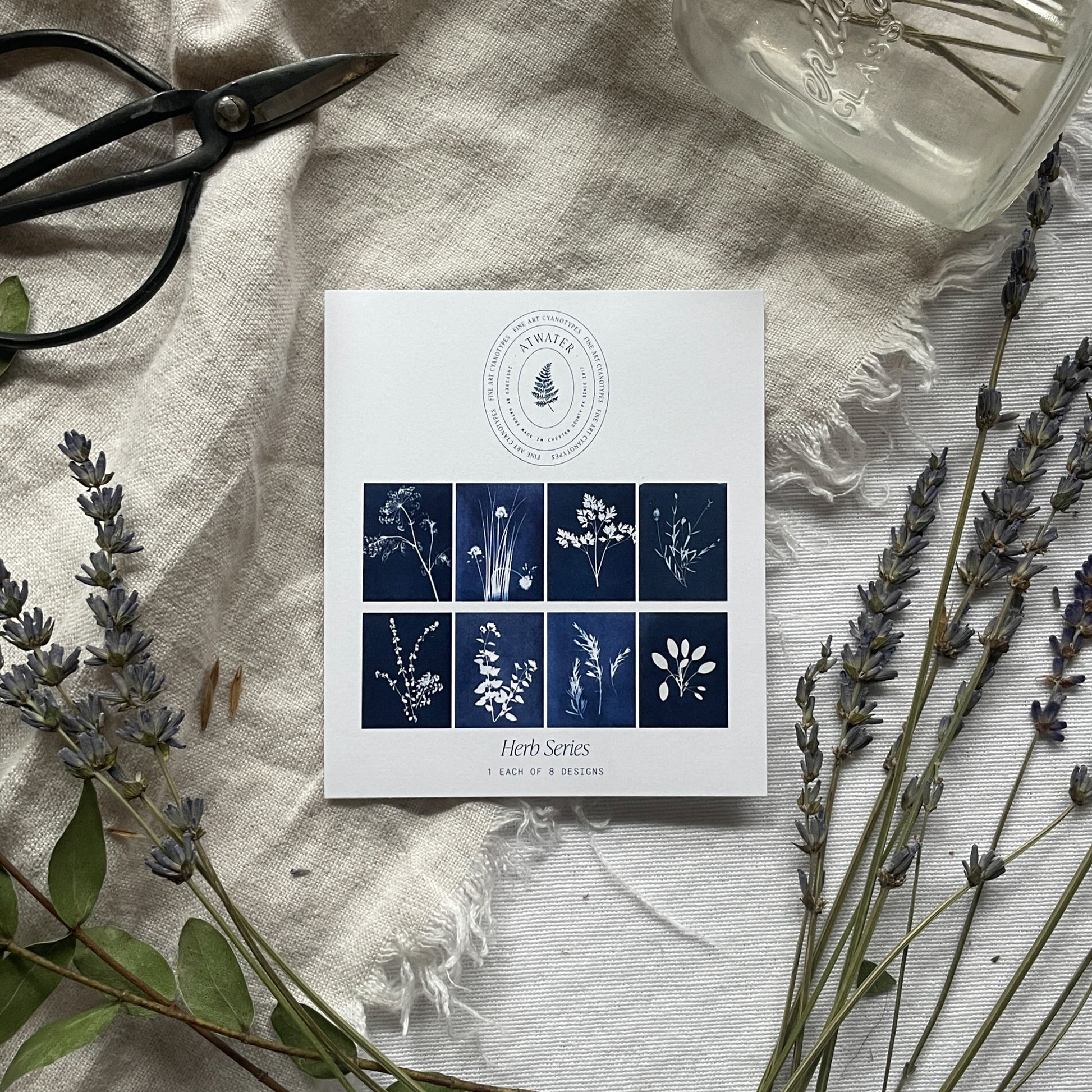 8 - A2 (4.25” x 5.5”) folded greeting cards make up this set of HERB greeting cards.