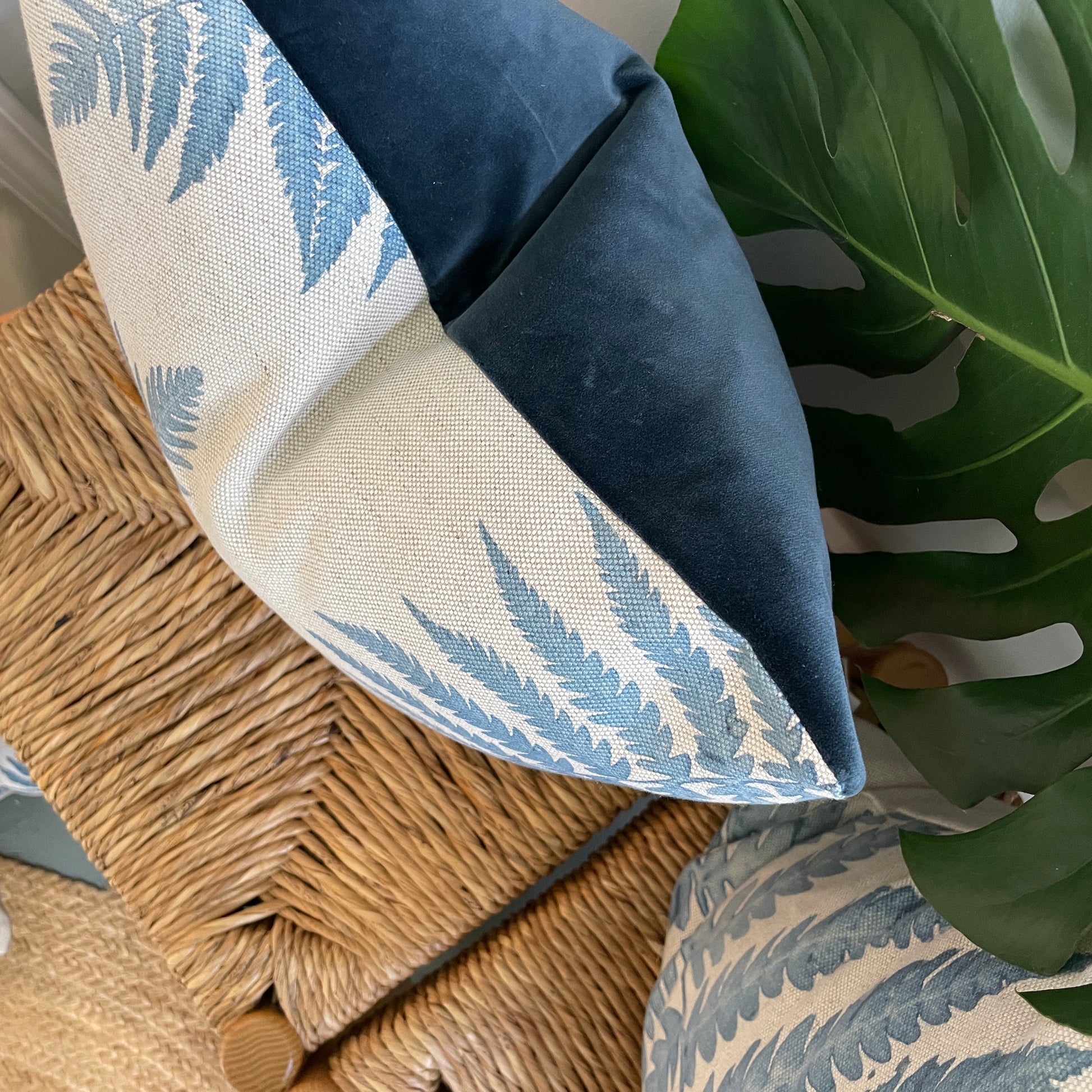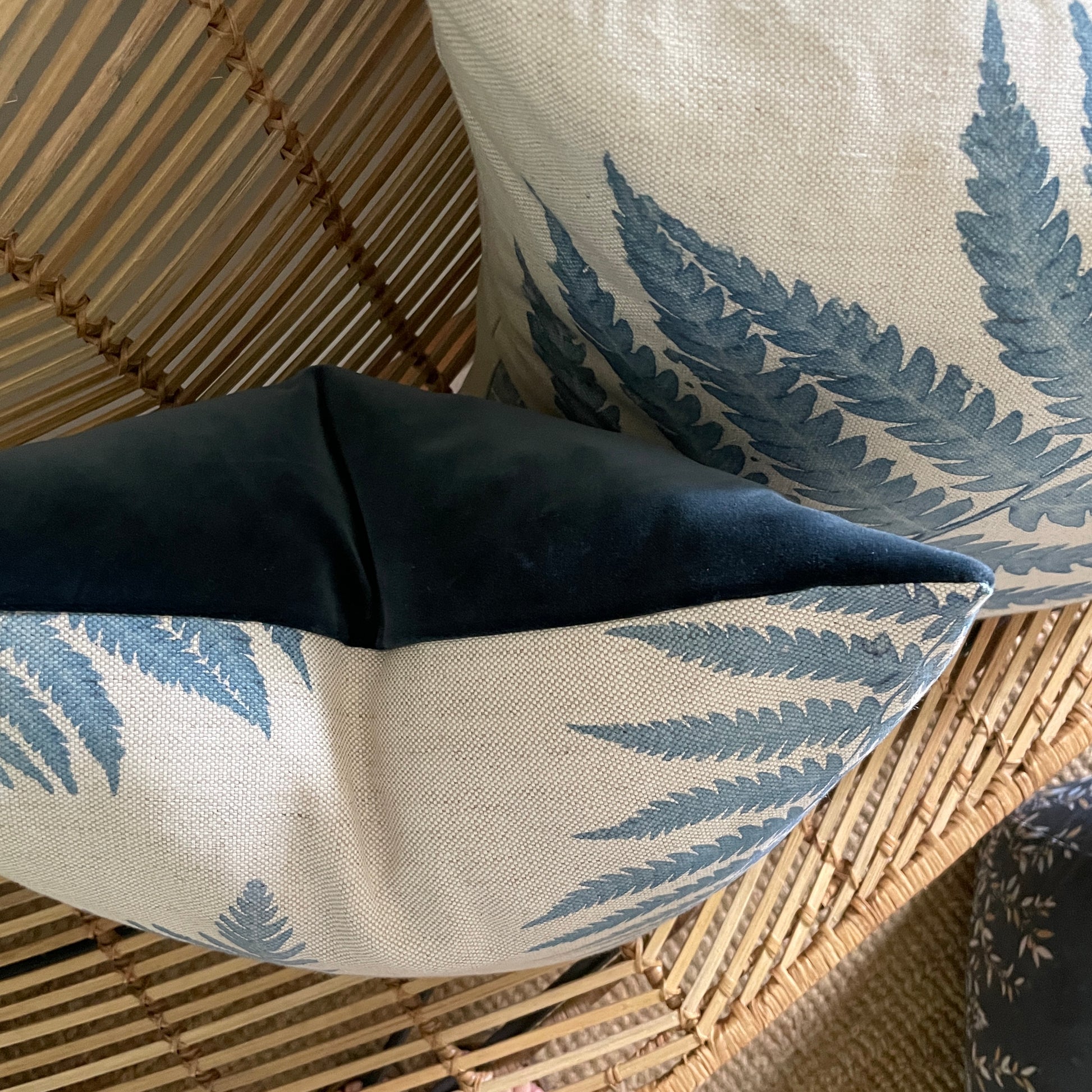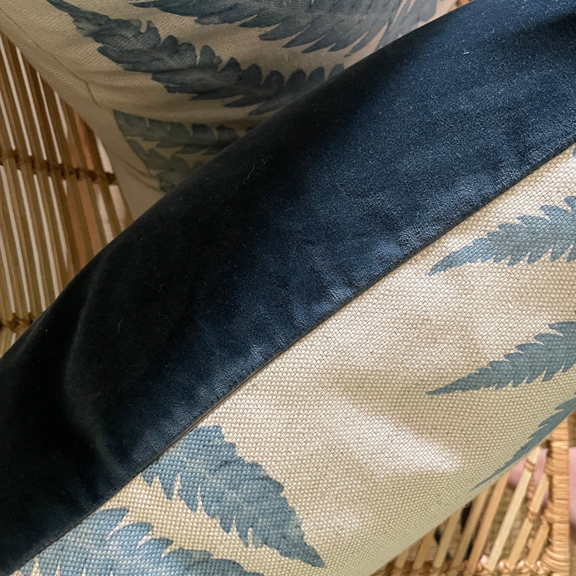 Linen Fern Pillow w/ navy velvet back - 18" x 18"