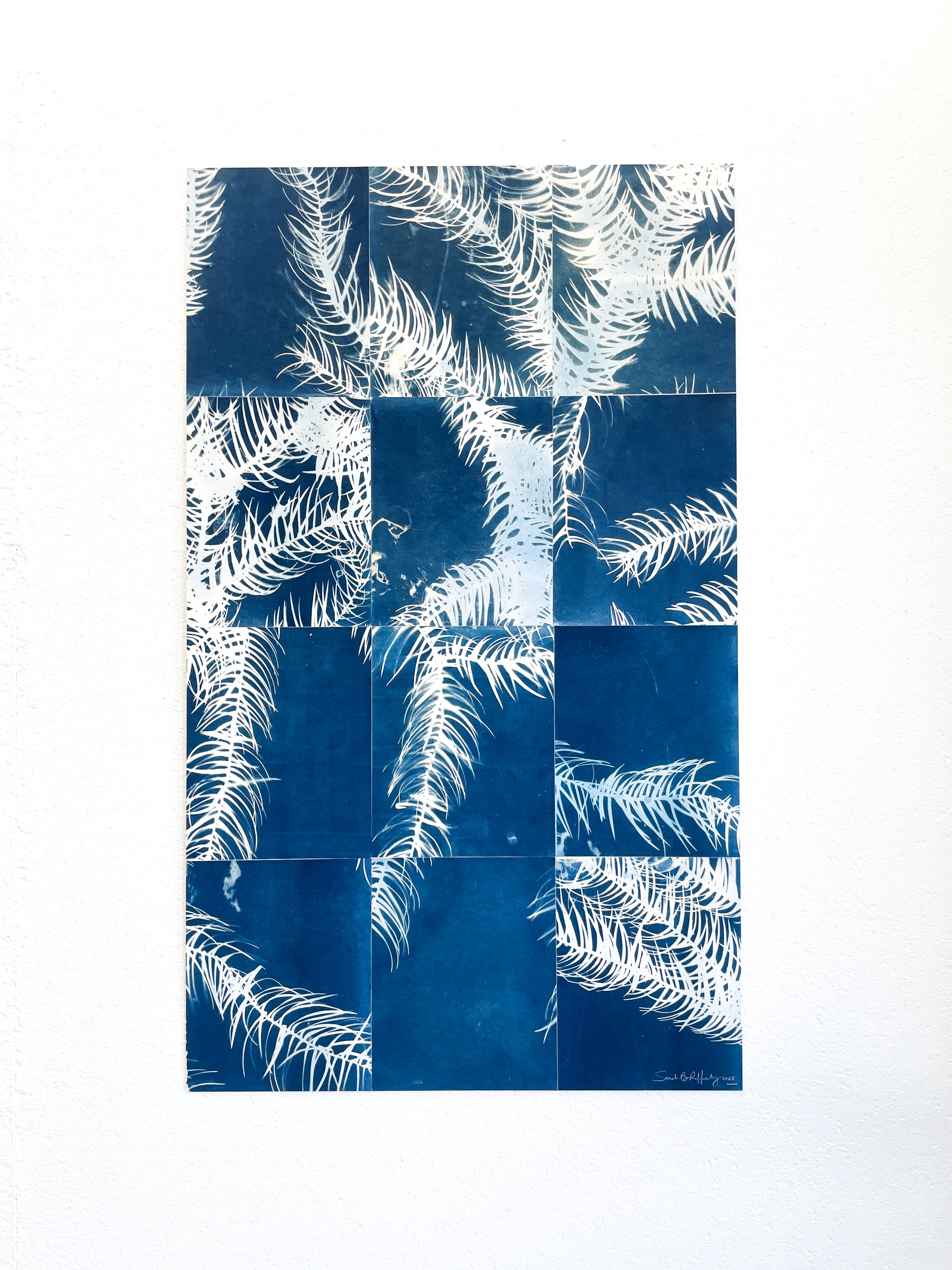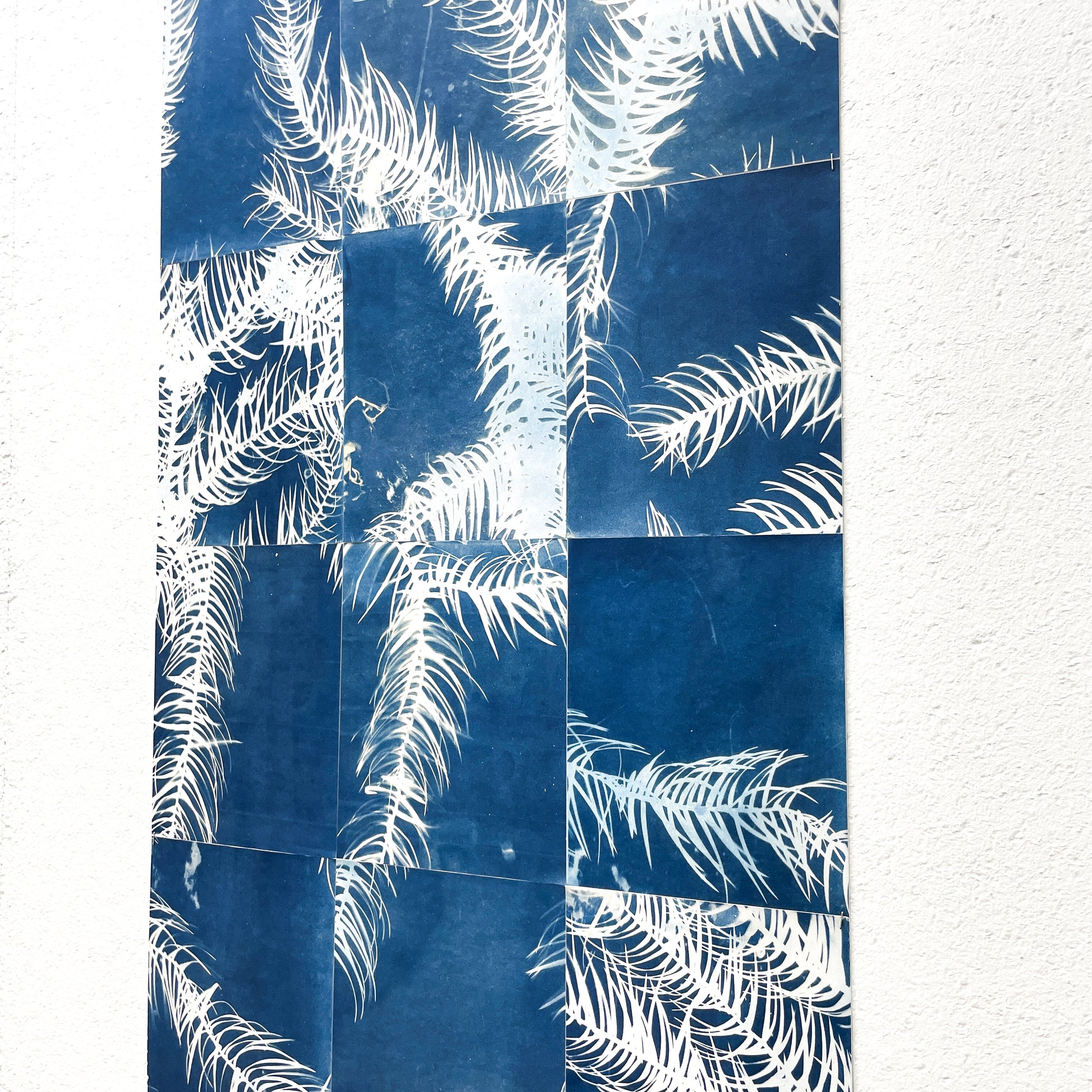 23" x 39" made out of 12 original cyanotypes to form a grid from my Artist in Residence at Westtown School 2024-25. Each piece is created using specimens from Westtown's campus Arboretum.